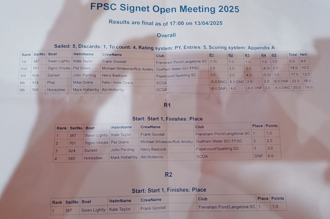 2025 ResultsFrensham Pond Open Results. and Event report.