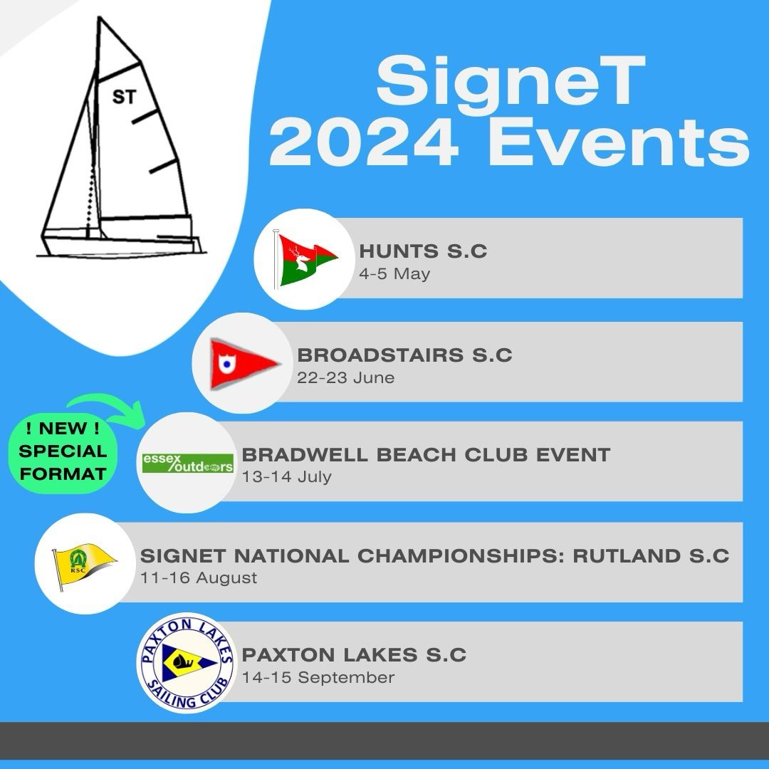 These are subscribable as an on-line calendar see: how to subscribe 4th/5th May 2024: Hunts SigneT Open - Hunts SC One of our classic and friendly venues where we join in with both Hunts SC and the Classic & Vintage Racing Dinghy Association (CVRDA) and Event report.