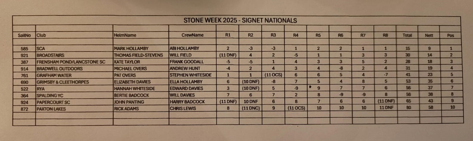 Stop Press: 2025 SigneT Nationals final results at Stone SC